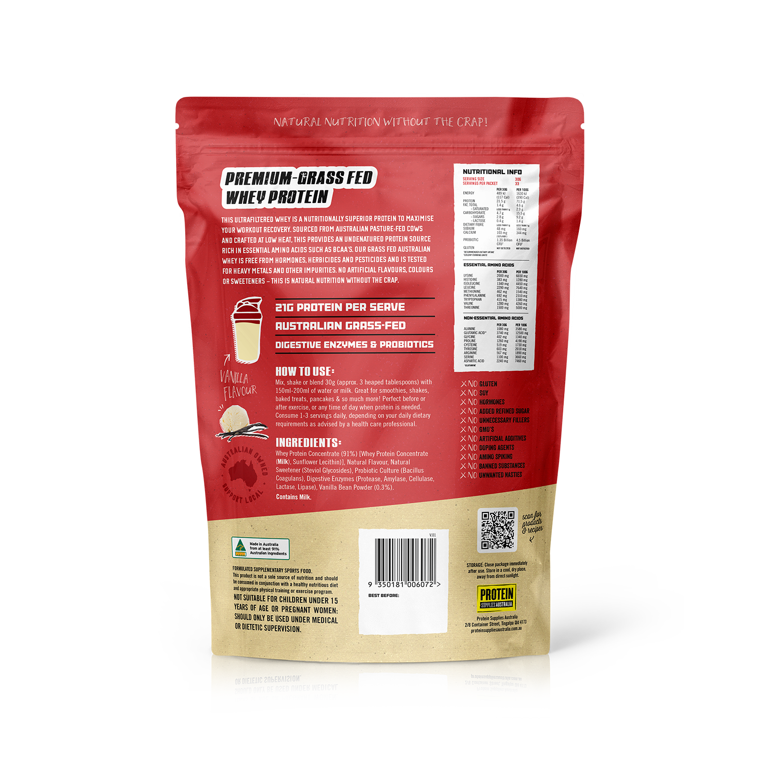 ✔️ Australian Grass-Fed WPC – Locally sourced for purity and sustainability