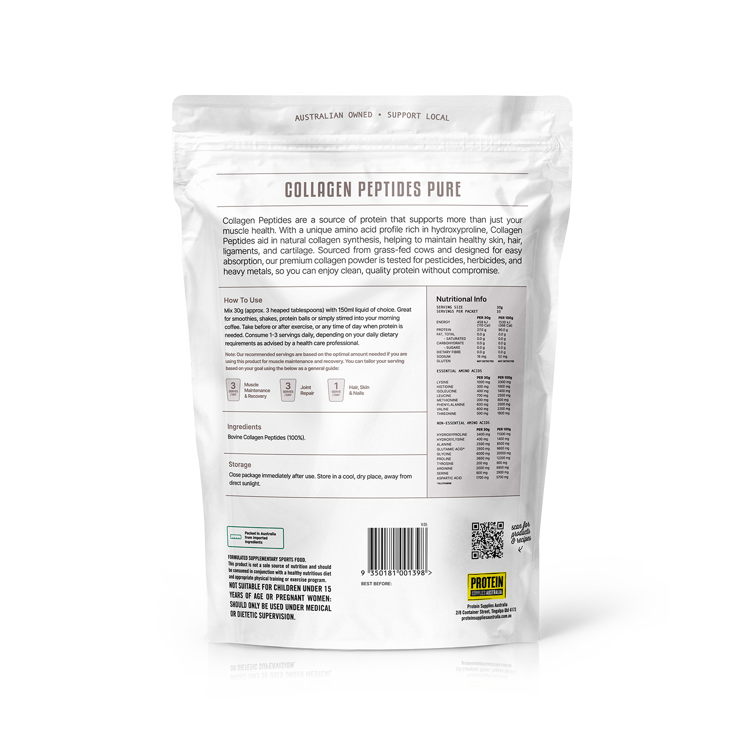 Introducing our premium Collagen Peptides Pure (Grass Fed), meticulously crafted to provide the highest quality natural, ultra-clean, and nutritionally superior collagen available. Perfect for those seeking a collagen supplement that blends effortlessly, tastes delicious, and is free from artificial additives and unnecessary fillers.
