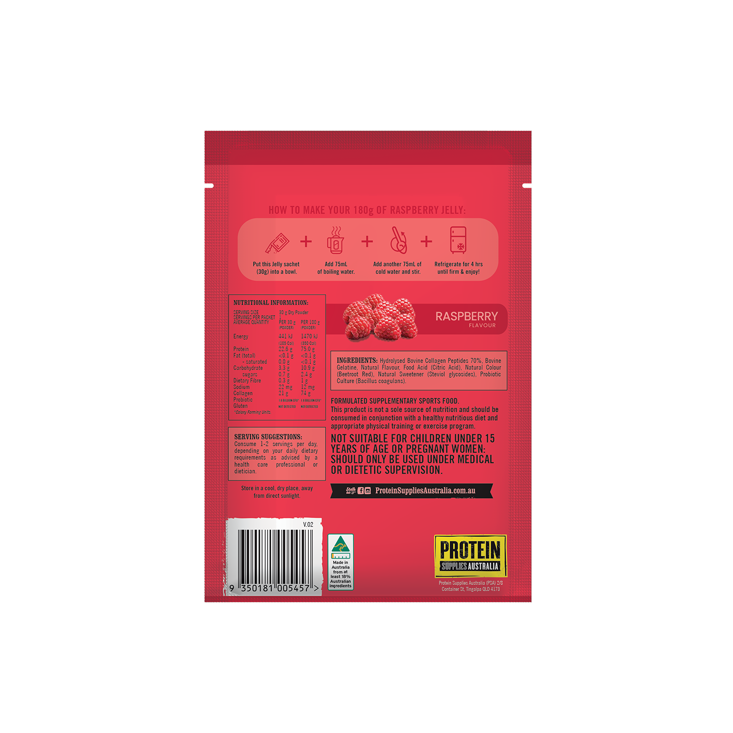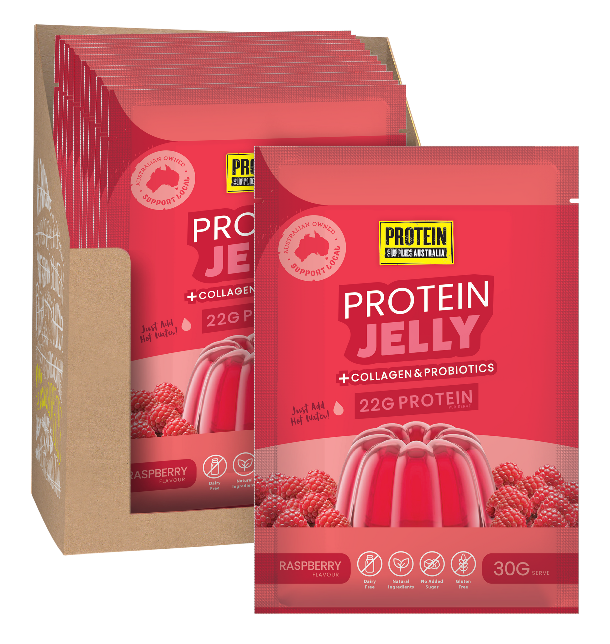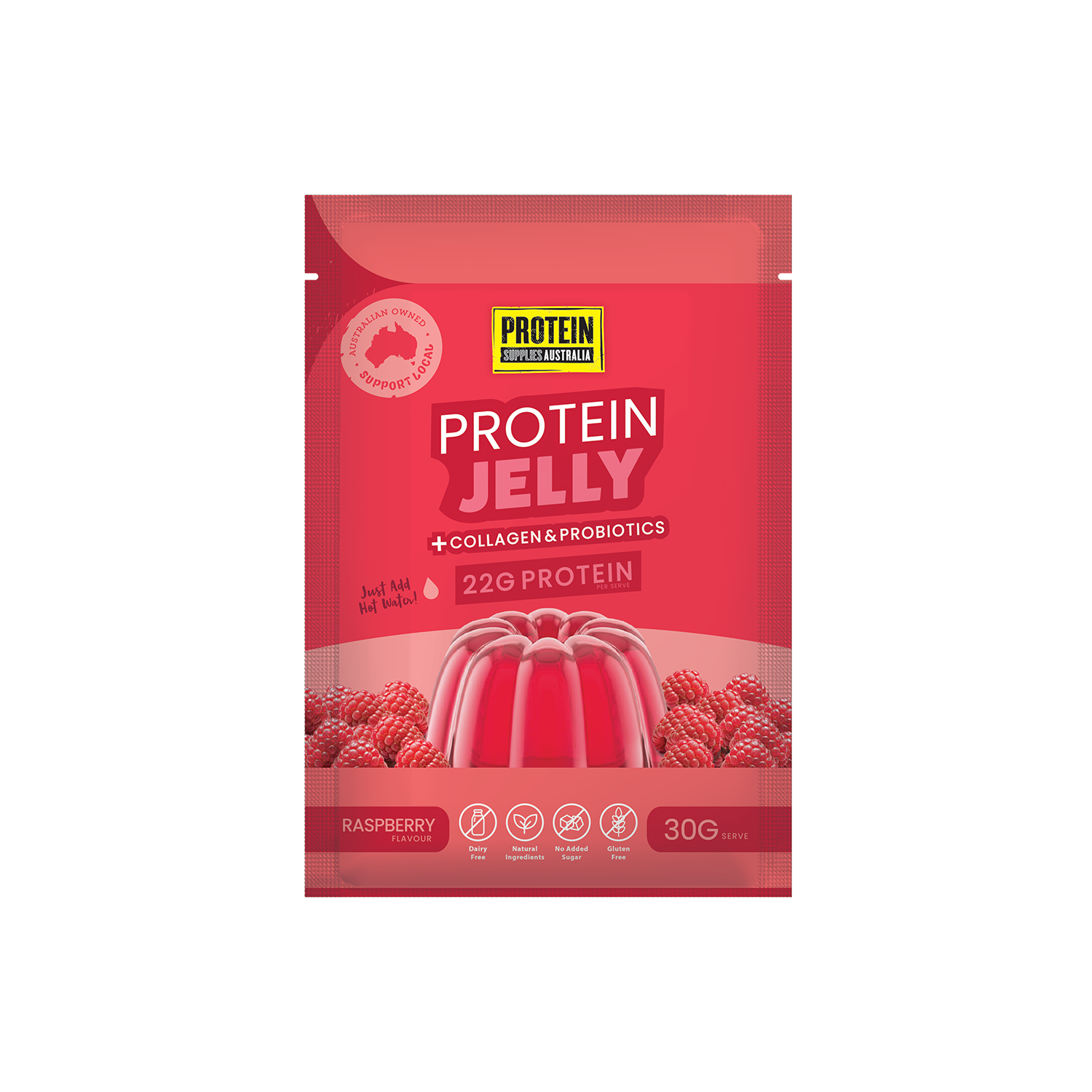 - Enjoy 180g of delicious Raspberry Protein Jelly!