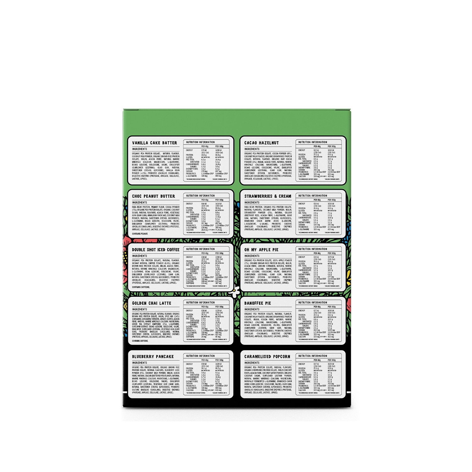 Give your customers the ultimate taste test — 10 unique 40g sachets featuring our most-loved plant-based protein flavours. Each blend delivers 24g+ of complete protein from faba bean, organic brown rice, and organic pea. Boosted with prebiotics, probiotics, and digestive enzymes, this box is designed to support gut health, recovery, and energy — naturally.